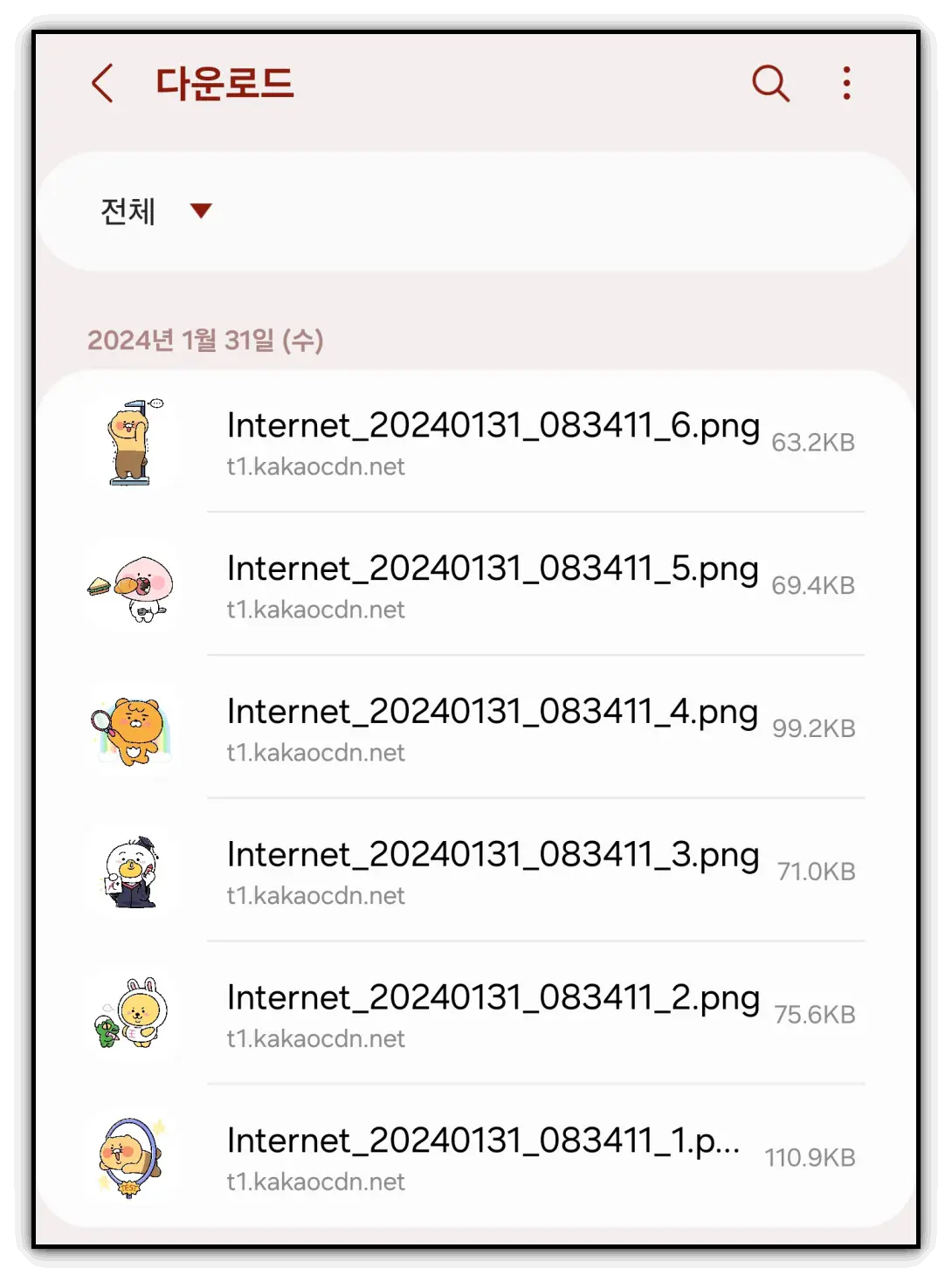 상단바에 이미지 다운로드 진행상황이 보입니다. 모든 이미지가 다운로드되면 터치해서 확인할 수 있습니다. 이미지이기 때문에 갤러리 앱에서도 확인할 수 있습니다. 배경화면이나 카카오톡 프로필 화면으로 지정하면 되겠습니다.